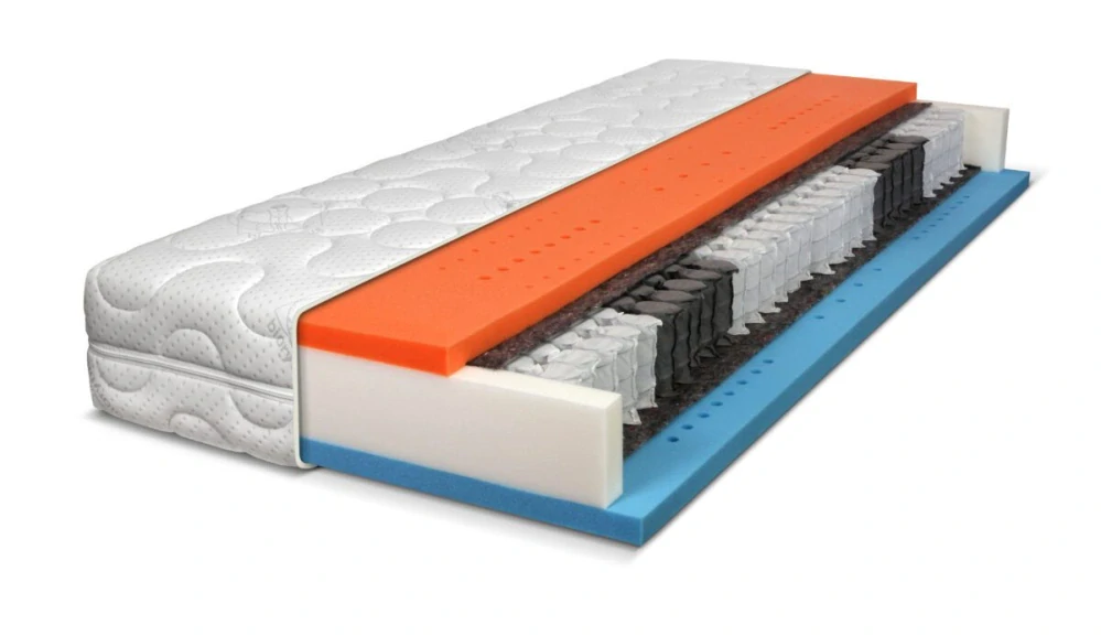 Matrace z taštičkového jádra a VISCO pěn. Tvrdost 3-středně tvrdá a 4-tvrdá, výška 24 cm, nosnost do 150 kg.
